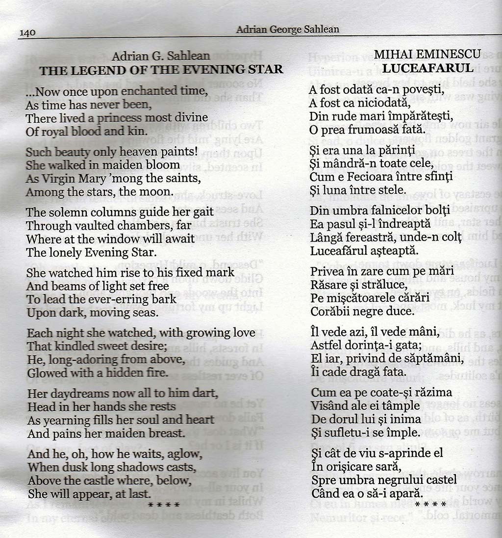 De altfel, odată cu publicarea versiunii Sahlean a Luceafărului, lumea anglofonă a descoperit cu adevărat farmecul poeziei eminesciene și a înțeles de ce este Eminescu poet național și ultimul mare romantic european.