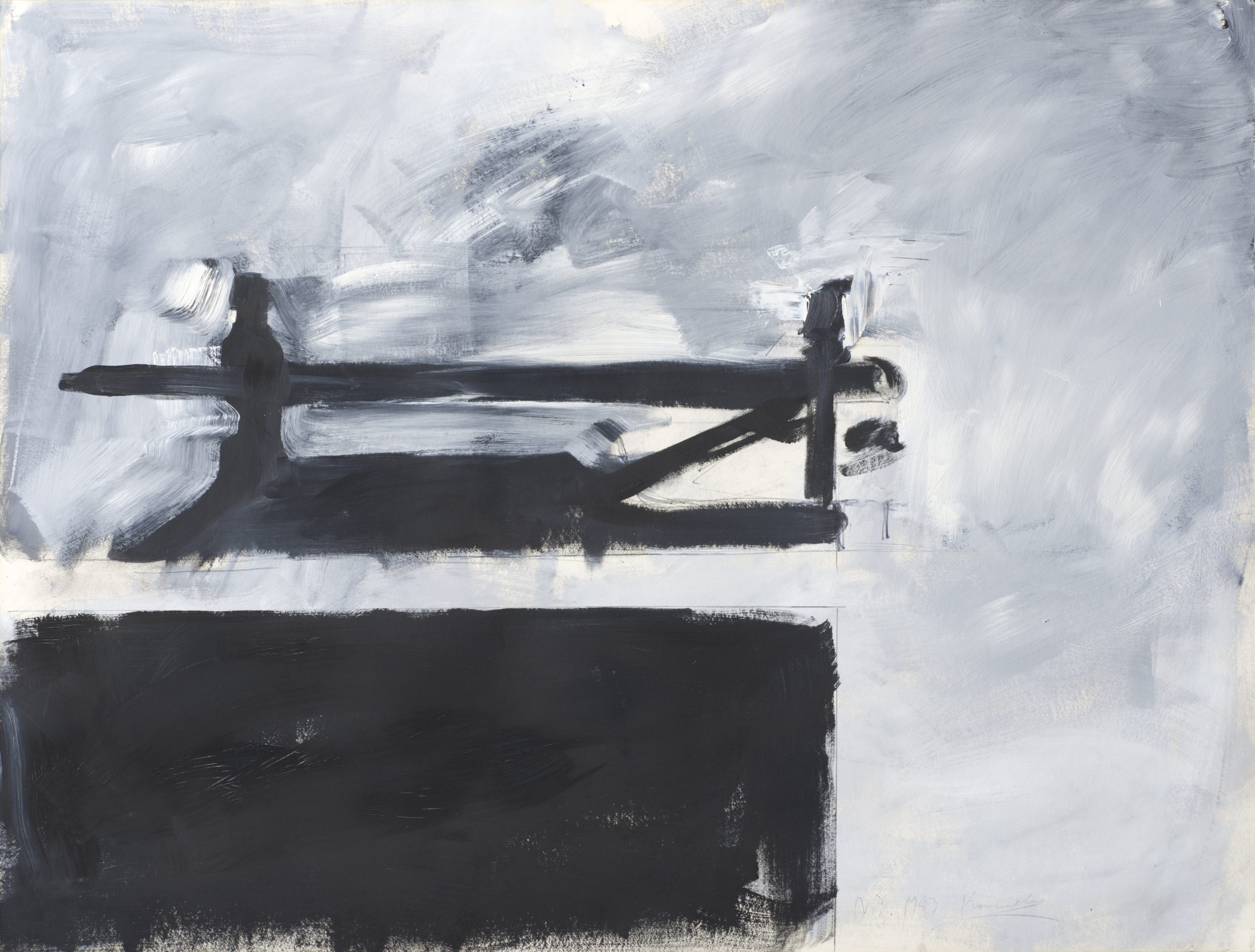 Jannis Kounellis reușește cu câteva tușe de pensulă să creeze o atmosferă de o rară frumusețe, unde se regăsește doar pecetea omului – care e scos din imagine. Pare să fie plecat de curând, iar arta lui Kounellis este tocmai aceea de a crea o puternică prezență a omului, cu toate că el este absent din cadru. Iar nuanțele de negru, ușor neclare, creează o atmosferă de magie.