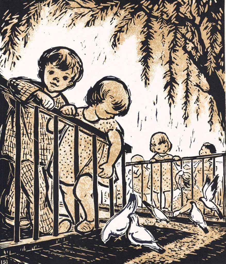 Nu facem critică de artă vizuală, nu este specialitatea noastră, dar așa, ca poet și ca admirator al artei vizuale, remarcăm pictura ”În ilegalitate” a Nataliei Matei, realizată în aquatint; aici artista, chiar dacă este obligată să reprezinte muncitorul în acțiune, cu elan revoluționar cerut de partidul comunist, reușește să creeze o lucrare deosebit de sensibilă, care transcede, ”comanda” imperativă. Curajul conspirației, a luptei împotriva exploatatorilor burgheji (din perioada în care Partidul Comunist Român a fost în ilegalitate în perioada interbelică) este prezent, însă talentul artistei vizuale face ca avântul revoluționar să treacă pe planul doi, tușa ei în creionarea întregii picturi trecând în prim-plan. Mult mai pe linia cerințelor partidului se situează Frida Imling, care pictează în linocut print așa-numiți ”Studenți”, dar care sunt îmbrăcați ca muncitori și mineri.( Poate este vorba de facultățile muncitorești – crearea cărora a fost cerută insistent de către sovietici, ca să se demonstreze că și pălmașii și muncitorii sunt în stare să absolve studii superioare, facultăți care au fost organizate începând cu sfârșitul anilor patruzeci ai secolului trecut în statele fostului lagăr comunist: la noi a devenit celebră printre artiștii plastici, cum erau numiți până de curând, așa-numita ”Sorbonica”, care a admis fără exmen oameni din popor viitori artiști vizuali, primul ei conducător al instituției fiind fiul de țăran Ion Sălișteanu). Avem de-a face cu o parte din istoria artei românești care trebuie să fie cunoscută de orice amator de artă. Căci face parte din istoria artelor vizuale. La fel cum nu trebuie ascunse și distruse marile picturi sau/și statui ale lui Lenin și Ceaușescu, care împodobeau străzile orașului, căci fac parte din istoria noastră. La intrarea în Parcul Herăstrău trona, la începutul anilor cincizci ai secolului trecut o imensă statuie a lui Iosif Vissarionovici Stalin, din bronz masiv, iar Parcul Herăstrău fusese redenumit Parcul Stalin, Bulevardul Aviatorilor devenise Bulevardul Stalin (iar orașul Brașov nu mai se numea astfel, ci fusese redenumit Orașul Stalin; pe un deal din apropierea orașului se scrisese, mai bine zis se tăiaseră brazii în așa fel, încât să se vadă limpede și din urbe, dar și din avion și să nu se uite zi sau noapte noul nume scris în natură: Stalin; în anul 1983 se mai vedea, cu toate că dictatorul comunist murise cu treizeci de ani în urmă, încă literele S, T și o parte din A, restul ștersese de acum, Slavă Domnului, natura, Până acolo putea ajunge lipsa de demnitate a politrucilor).