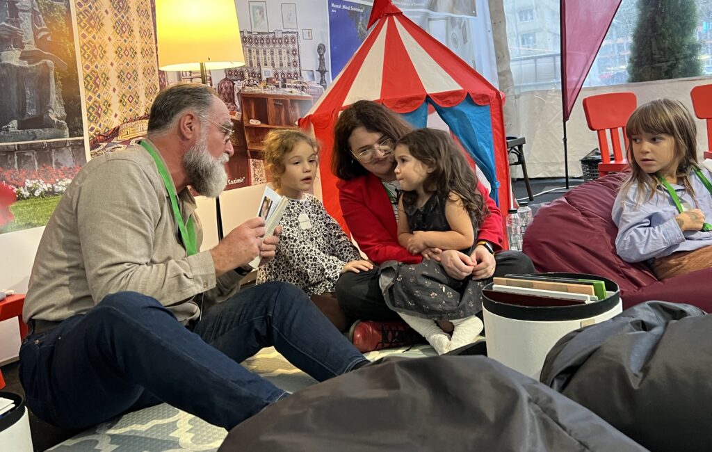 To my amazement, I drew into my magical reading circle some teens and youngsters that seemed to like my (story)telling ― se them in the photo at the beginning of this article ― and I asked them if they wanted to listen to another one, one more, as if I were a pop star in front of a cult audience craving for the sounds of their ido. To my amazement, because I thought that the age range should be from five to ten, a student, a master student, yes, they wanted more, so I read another story from ”Cartea lui David” (David’s Book) with stories about / with my son, David-Thomas ― when he was a child discovering the world ― and they applauded.