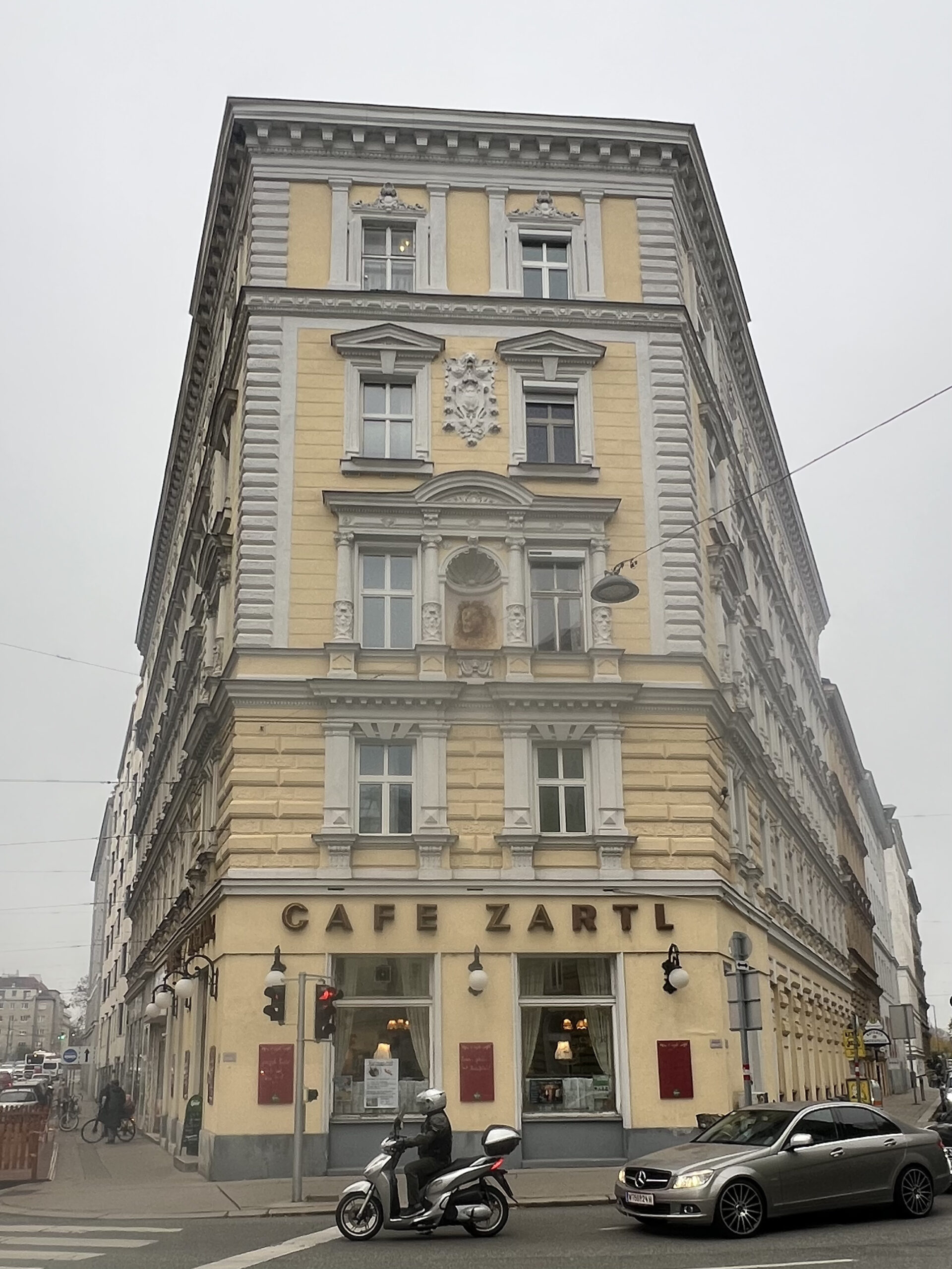 Am ajuns într-o bună dimineață a lunii noiembrie din anul de grație 2025, o dimineață rece și umedă, înnorată, din pură întâmplare, la Café Zartl, care, din 1883, de cum s-a încheiat construcția clădirii, s-a instalat la parterul acesteia (chiar dacă la începuturi avusese un alt proprietar) și unde, și azi, se mai pot citi gratuit ziarele din Austria și Germania – unii clienți nici nu intră bine în stabiliment, nici n-apucă să-și scoată paltonul, că și înșfacă un ziar sau chiar două, ca și cum ar fi pus mâna, după îndelungi căutări fără succes, pe Sfântul Graal –, fixate pe un cadru de metal și lemn. O bună parte a mobilierului este neschimbat de la începuturile cafenelei, canapele cu o pânză dând seamă de un model aparte și mese cu marmură colorată, becuri cu o lumină caldă, aprinse și în timpul zilei, fiind protejate de abajururi elegante din vremuri trecute, ca și cum timpul ar fi stat în loc.