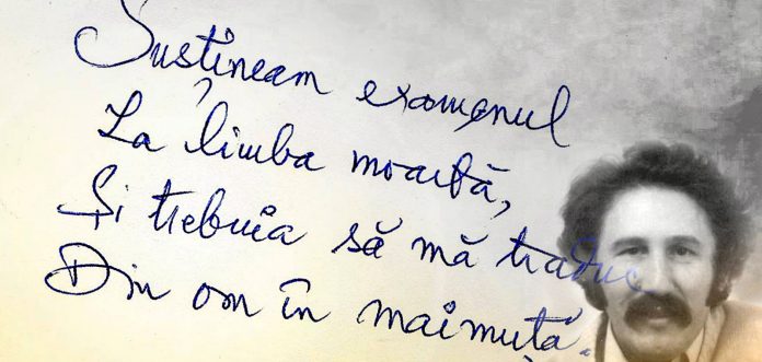 Nu era vorba de o contagiune, Doamne fereşte, nu apropierea de ceea ce nu mai era în viaţă, dar atât de mult existând în spirit, ar fi fost letală, ci dificultatea de-a învăţa o limbă atât de sintetică, de-un pragmatism pe măsura legiunilor romane, organizate perfect, deplasându-se încet, dar exact și necruțător, cuceritoare de vaste teritorii, aşa că Marin Sorescu simțea mai degrabă tentația limbii române, atât de mustoasă, ca și vinul produs în Oltenia deluroasă, aidoma limbii române, vocalice şi melancolice, având atâtea de oferit, chiar şi dincolo de graniţele mult iubitei sale Bănii.
